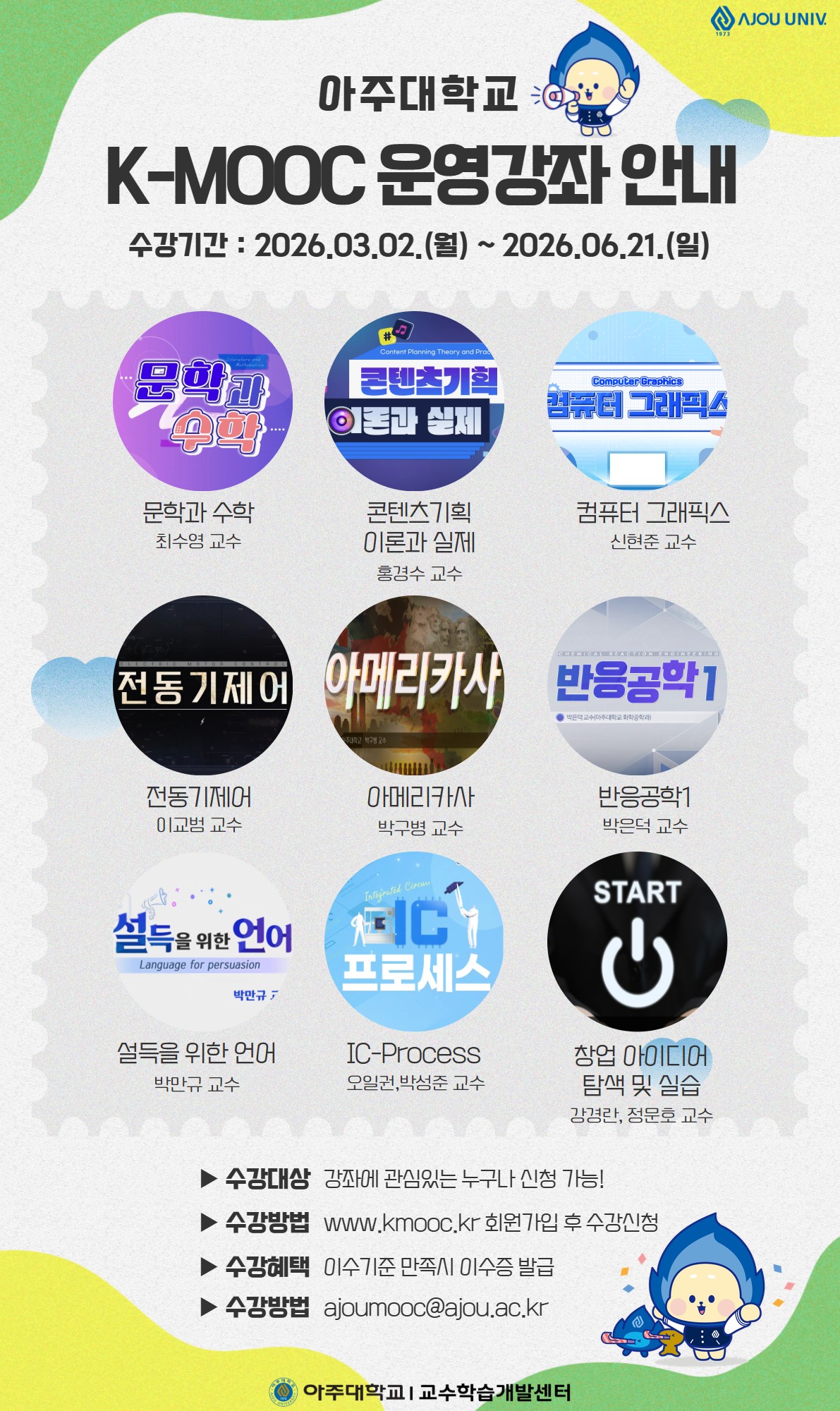 아주대학교 2026년 1학기 K-MOOC 강좌 수강 안내