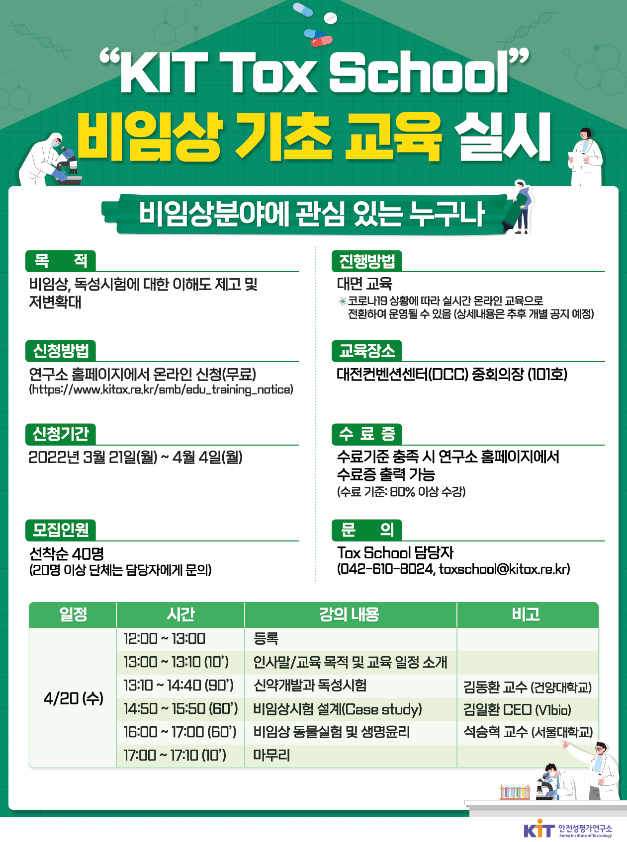 - [안전성평가연구소] 2022-1차 『KIT Tox School』 비임상 기초교육 개최 안내