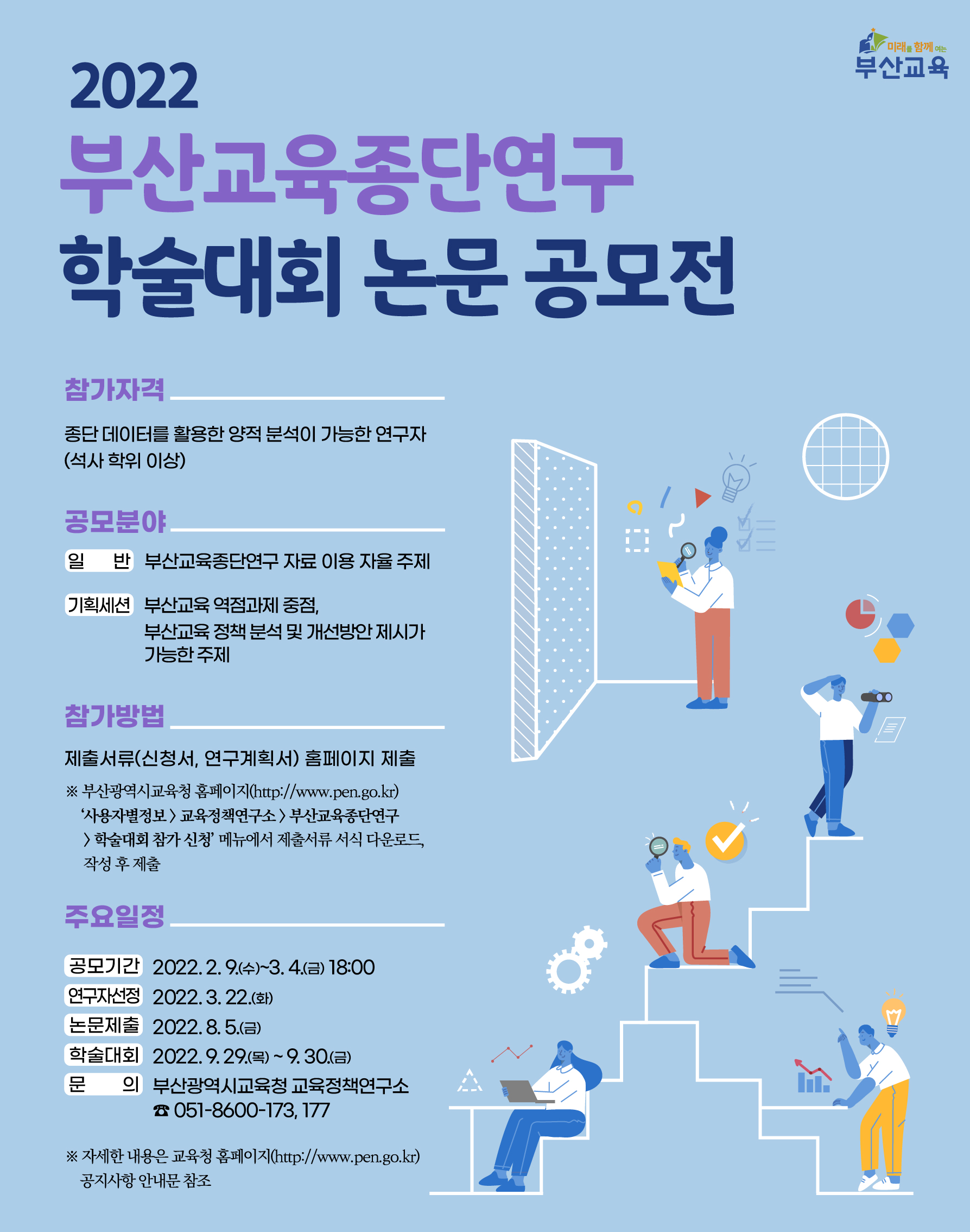 - [부산광역시교육청] 2022 부산교육종단연구 학술대회 논문 공모 안내