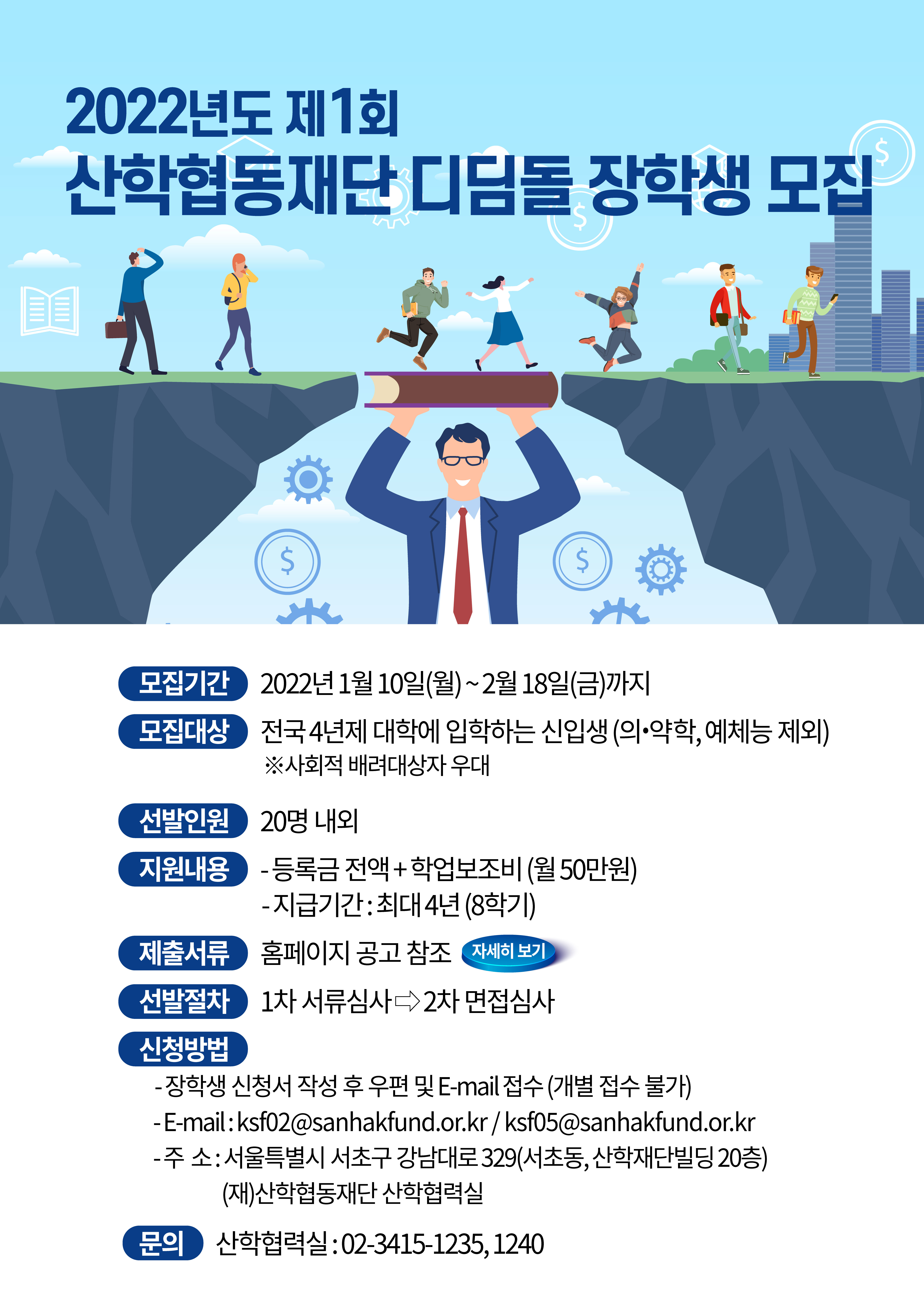 - [재단법인 산학협동재단] 2022년도 『산학재단 디딤돌 장학금』 지원사업 연장 공고 안내