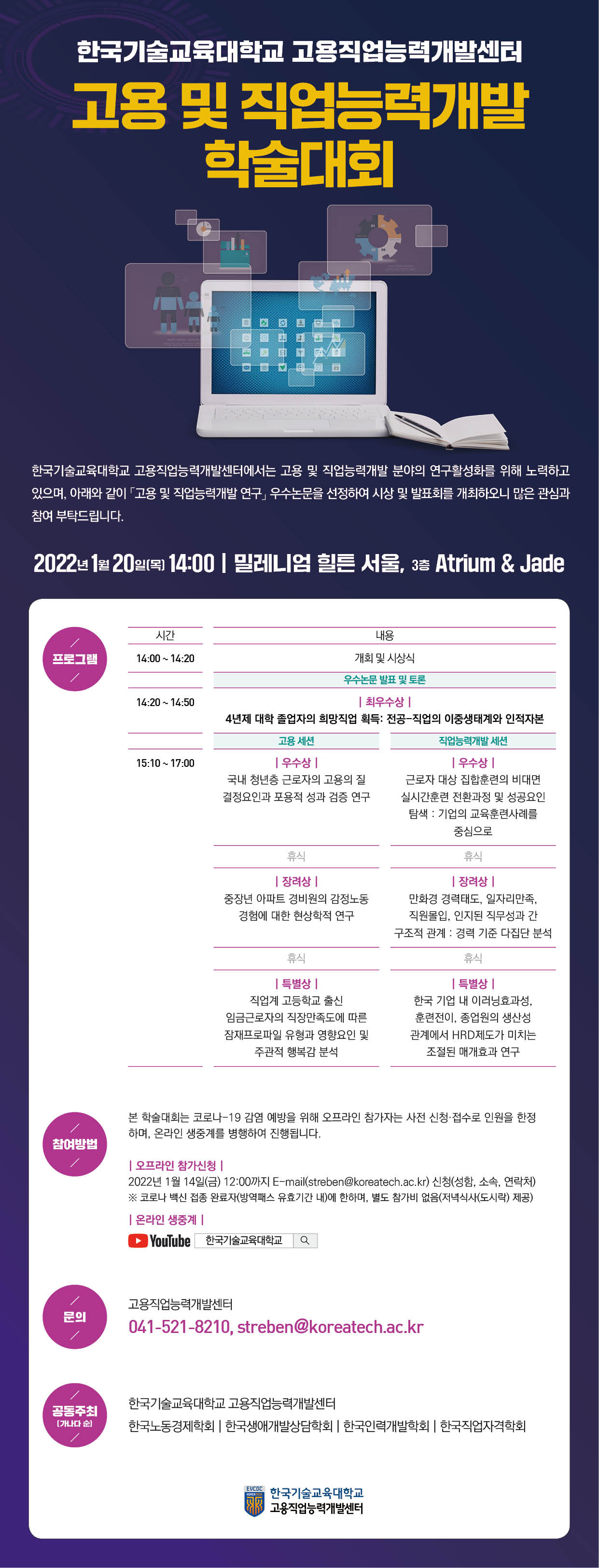 - [한국기술교육대학교] 한국기술교육대학교 고용직업능력개발센터 고용 및 직업능력개발 학술대회 개최 안내