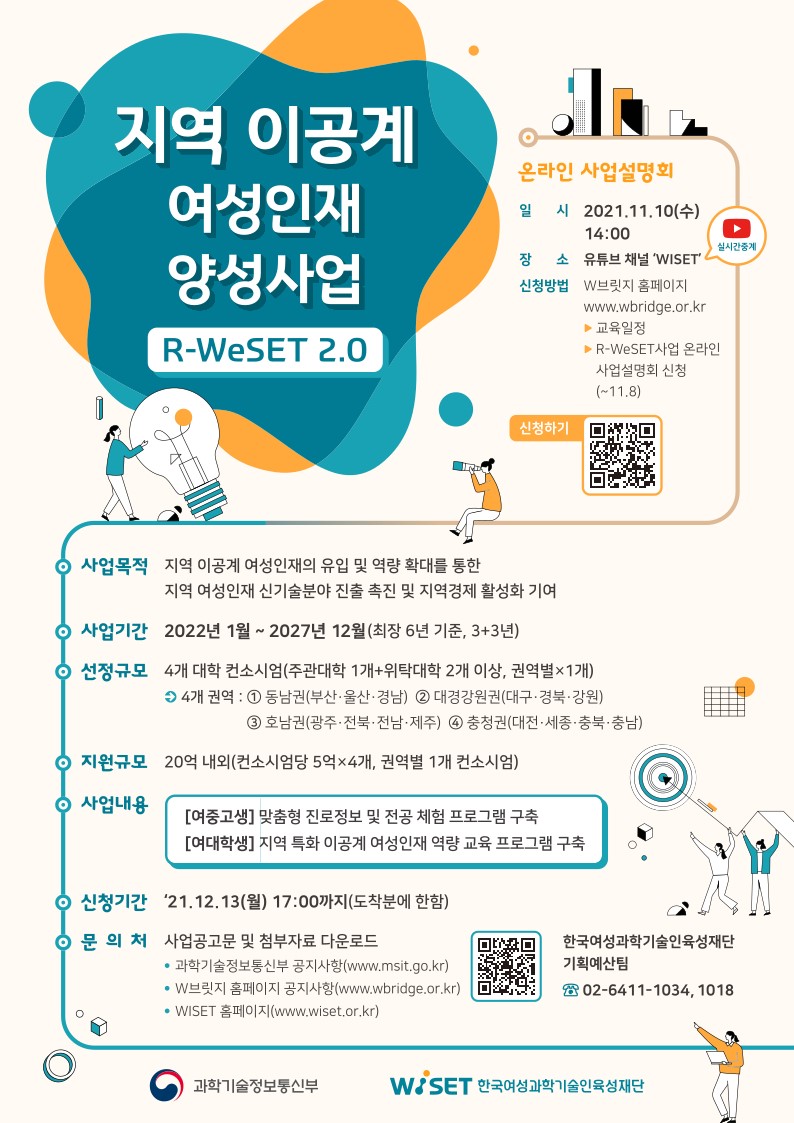 - [한국여성과학기술인육성재단] 2022년 지역 이공계 여성인재 양성 사업(R-WeSET 2.0) 안내 (충청권)