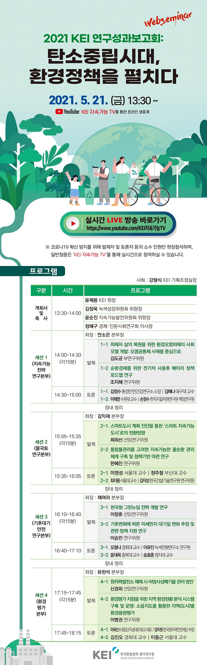 - [한국환경정책·평가연구원] 2021 KEI 연구성과보고회 개최 안내