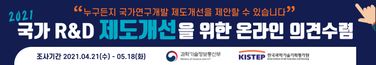 - [일반공지] [한국과학기술기획평가원] 국가 R&D 제도개선 의견수렴 참여 협조 요청