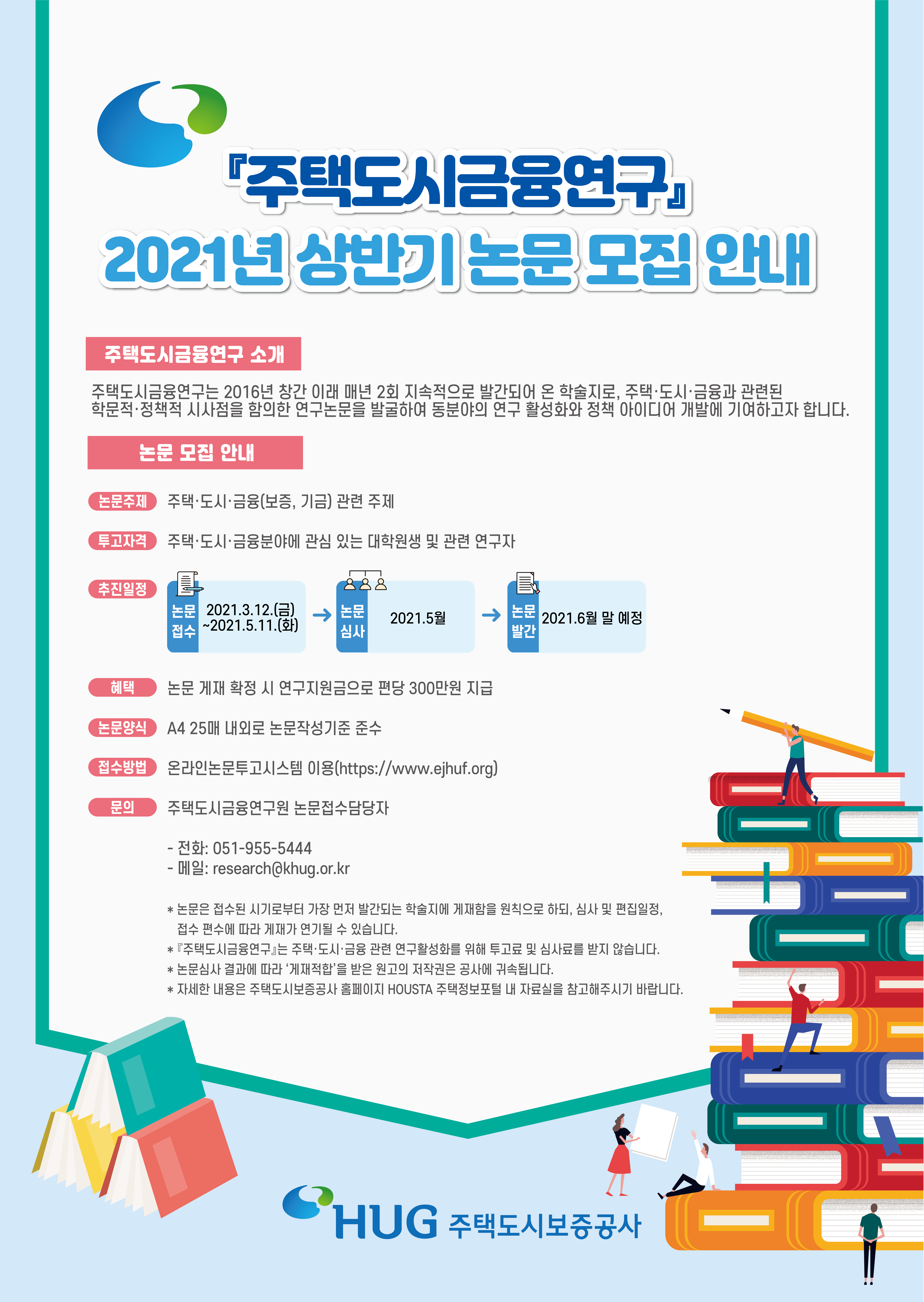 - [일반공지] [주택도시보증공사] 『주택도시금융연구』2021년 상반기 논문 모집 안내