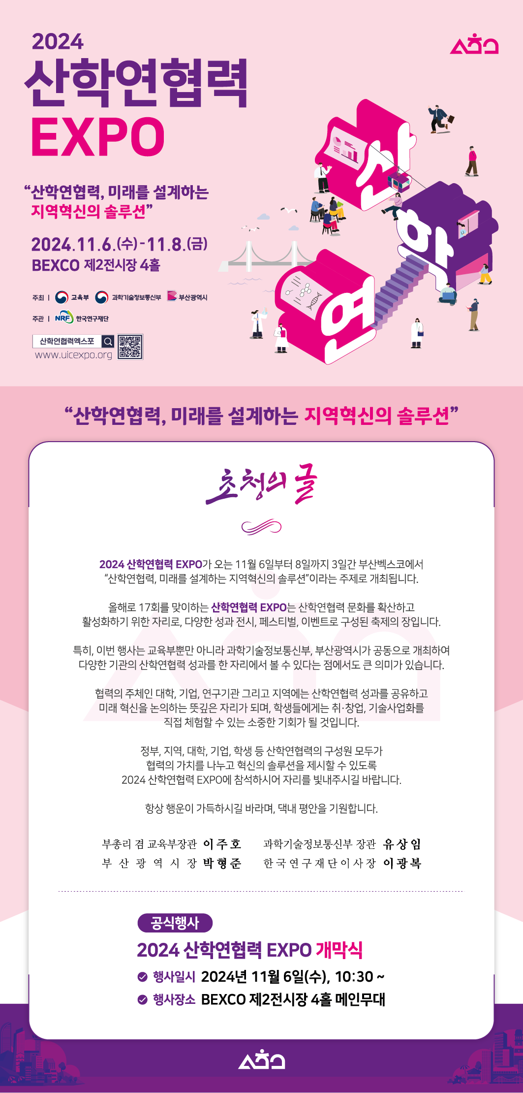 - [한국연구재단] 2024 산학연협력 EXPO 개최 안내